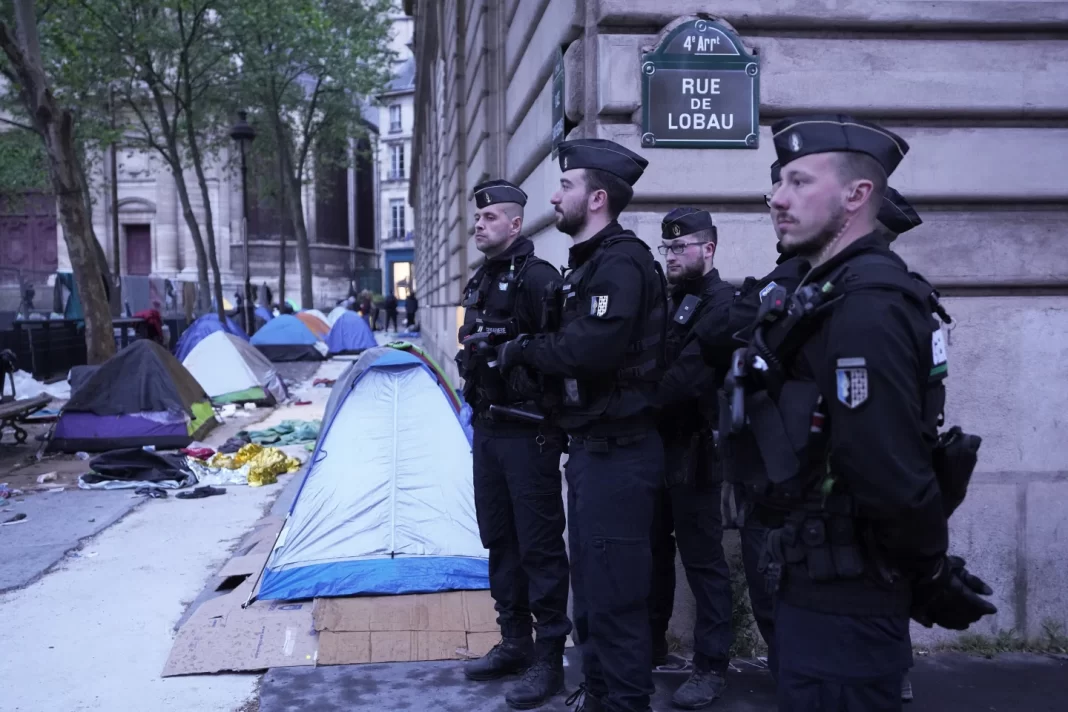 French police evicted migrants from a makeshift tent-camp next to Paris City Hall early on Tuesday, the latest clear-out of people without homes that aid groups allege is a campaign of ’’social cleansing″ ahead of the Summer Olympics.