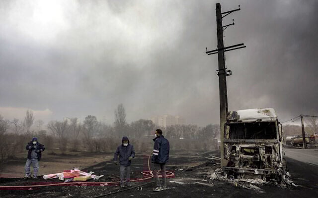 tanker vehicle near an ongoing fire following an overnight airstrike on the Shahran