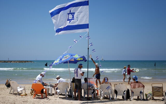 Across the rest of the country, groups of families and friends wore white and blue and enjoyed the pleasant weather, visiting nature areas, beaches, streams and city parks, taking in the sun and celebrating 78 years of Israel.