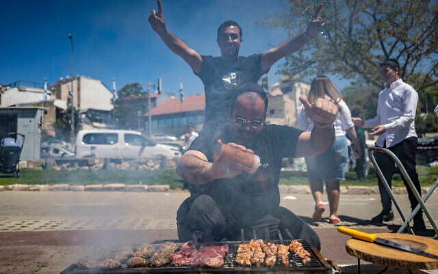By midday, Jerusalem’s Sacher Park was filled with revelers holding Israeli flags and sporting other blue-and-white memorabilia. Residents tended to grills set up across the grassy expanse as others kicked back on lawn chairs.