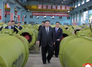 Kim said “the country’s missile and shell production sector is of paramount importance in bolstering war deterrent,” according to KCNA