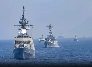 Iran, Russia and China show off their ships in a joint naval drill in...