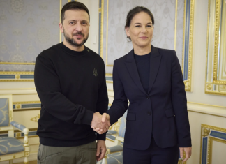 Germany’s foreign minister says in Kyiv that air defenses are an ‘absolute priority’ for...