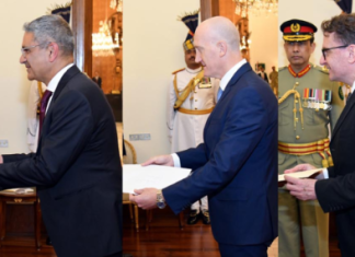 Islamabad — Four newly designated envoys presented their diplomatic credentials to President Asif Ali Zardari at a formal ceremony held at Aiwan-e-Sadr.