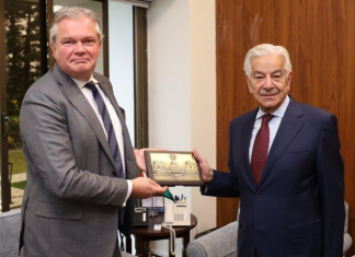 Islamabad — The Ambassador of the Kingdom of the Netherlands, H.E. Robert-Jan Siegert, called on Federal Minister for Defence Khawaja Muhammad Asif at his office in Islamabad.