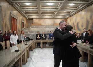 In rights landmark, Greek novelist and lawyer are the first same-sex couple wed at...