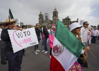 Tens of thousands of demonstrators cloaked in pink marched through cities in Mexico and abroad on Sunday in what they called a “march for democracy” targeting the country’s ruling party in advance...