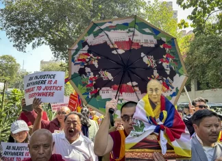 Hundreds of Tibetans march on New Delhi streets asking China to leave Tibet on...