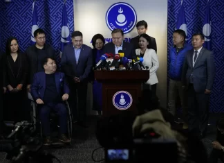 Mongolia’s governing party won parliamentary elections Friday but by only a slim margin as the opposition made major gains, according to tallies by the party and news media based on near-complete results.