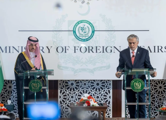 Minister of Foreign Affairs Prince Faisal bin Farhan bin Abdullah held a joint press conference with his counterpart, Minister Ishaq Dar, in Pakistan’s capital, Islamabad, on Tuesday.