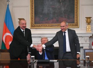 Leaders of Armenia and Azerbaijan shake hands and sign deal at White House peace...