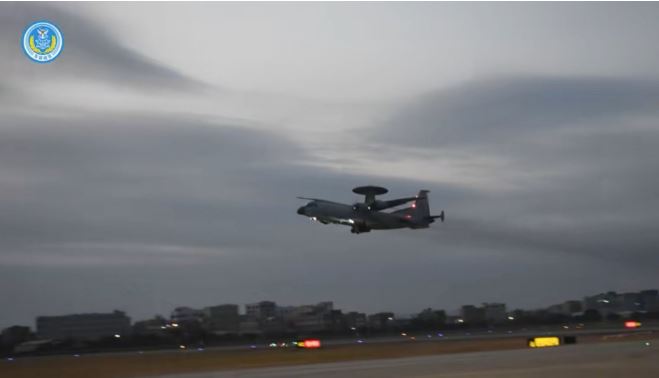 Screenshot of footage posted by the Eastern Theater Command on the social media platform WeChat shows a Chinese military aircraft taking off during drills around Taiwan on Oct. 14, 2024.
