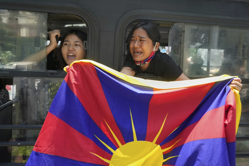 On Tuesday, exiled Tibetans protested in India against the Chinese foreign minister’s visit there.