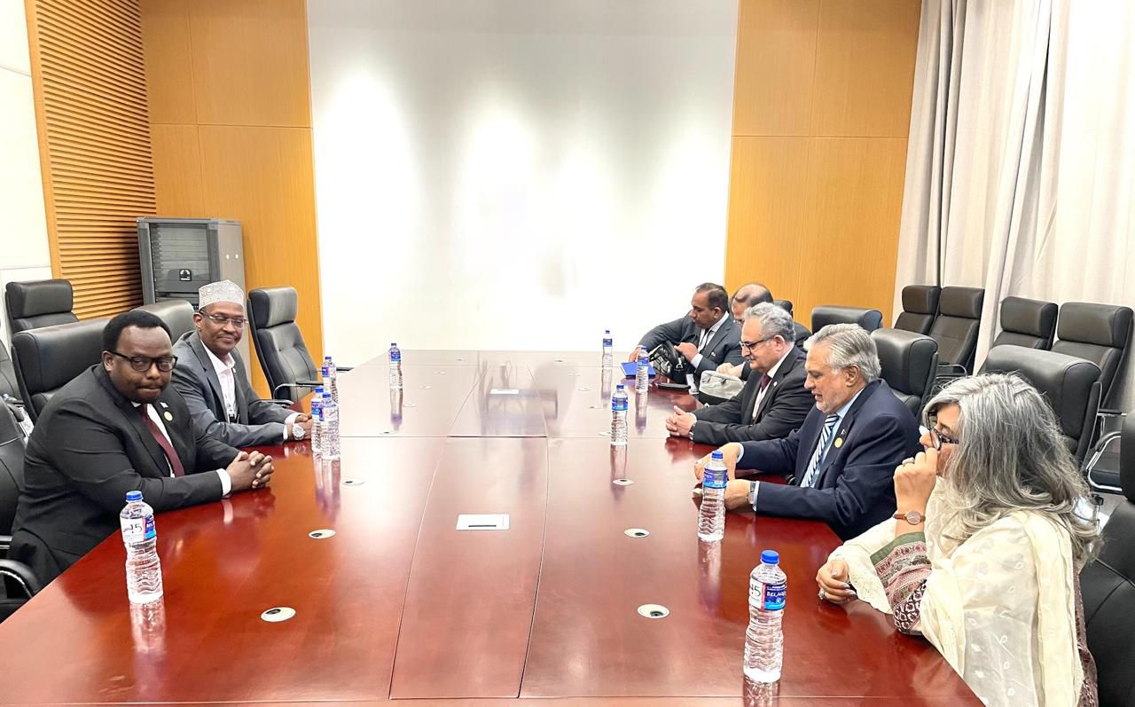Deputy Prime Minister and Foreign Minister Senator Mohammad Ishaq Dar on Sunday met with Deputy Prime Minister of Somalia, Salah Jama, on the margins of 15th OIC Islamic Summit in Banjul, The Gambia.