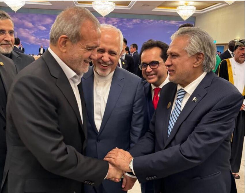 Deputy Prime Minster and Foreign Minister Senator Mohammad Ishaq Dar on Tuesday met with the newly sworn in Iranian President Dr. Masoud Pezeshkian after the investiture ceremony held here.