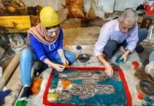 Another 3rd-year student Zhanel Nabiyeva presented her Serga (An earring) graphic style painting.