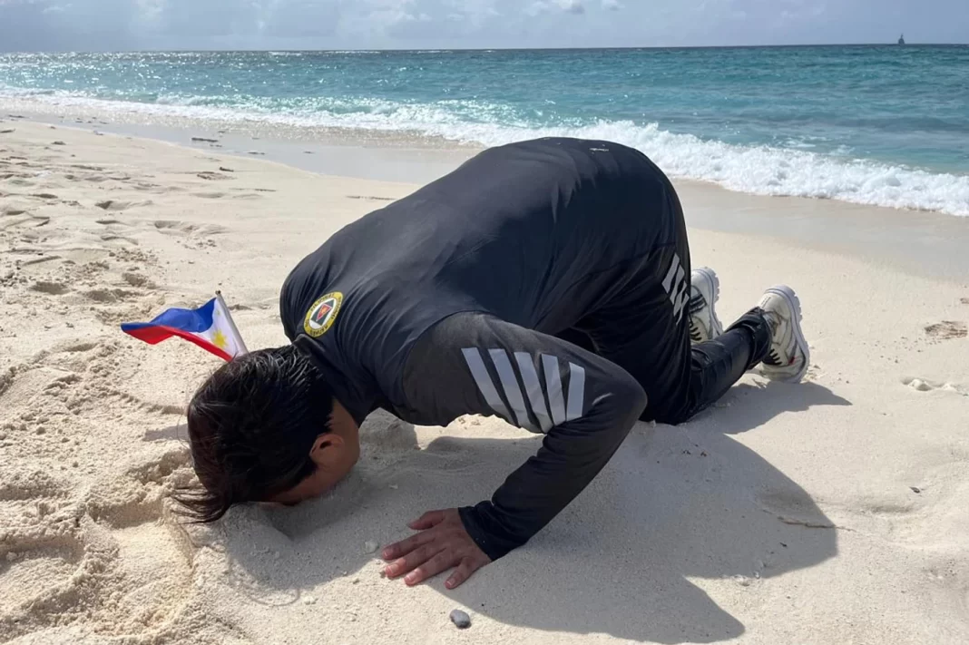 WEST YORK ISLAND, South China Sea — Overwhelmed after setting foot for the first time on a far-flung but picturesque island in the disputed South China Sea, a Filipino army official knelt to kiss the shore. She held a small Philippine flag that fluttered in the breeze.