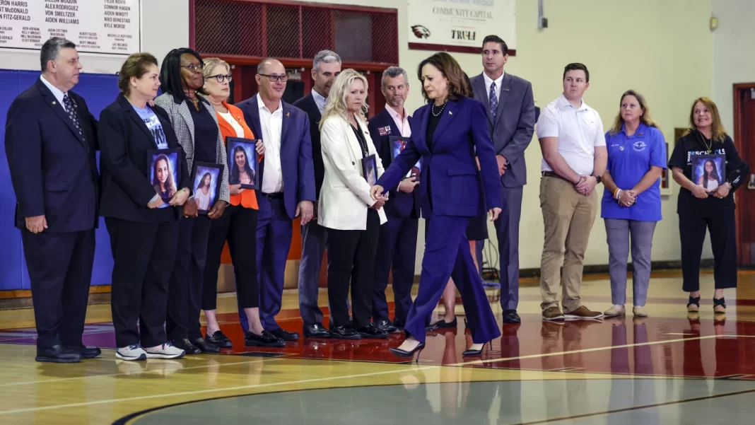 Some Stoneman Douglas families who participate in the tours, along with Harris and President Joe Biden, want the sale of AR-15s and similar guns banned, as they were from 1994 to 2004, but there isn’t sufficient support in Congress. Opponents, which include other victims’ families, argue that such a ban would violate the Second Amendment and do little to stem gun violence.