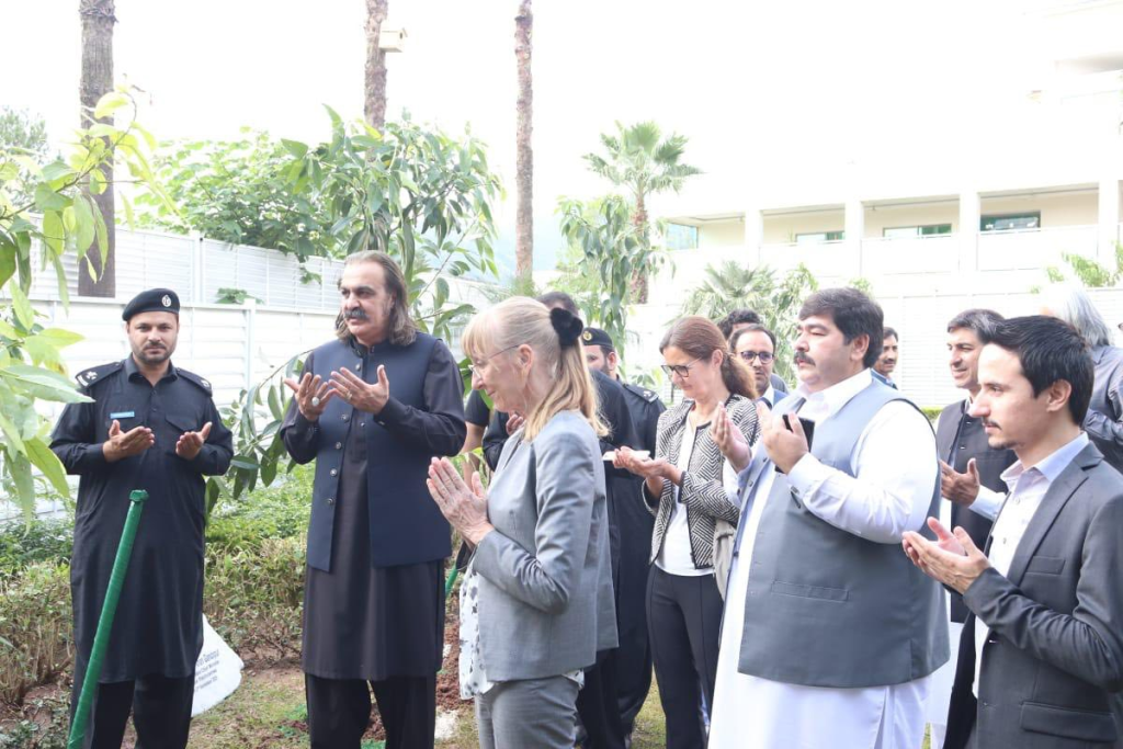 Islamabad – September 2, 2025 — In a symbolic and meaningful gesture underscoring Pakistan-Germany environmental cooperation, the Ambassador of Germany to Pakistan Ms Ina Lepel joined Chief Minister Khyber Pakhtunkhwa (KP), Ali Amin Gandapur, in a tree plantation ceremony today at the KPK House in Islamabad.