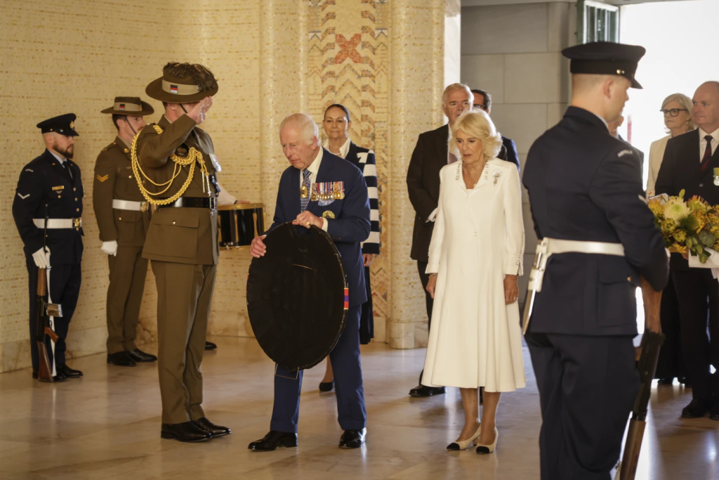 Earlier Monday, Charles and Camilla laid wreaths at the Australian War Memorial then shook hands with well-wishers on the second full day of their visit.