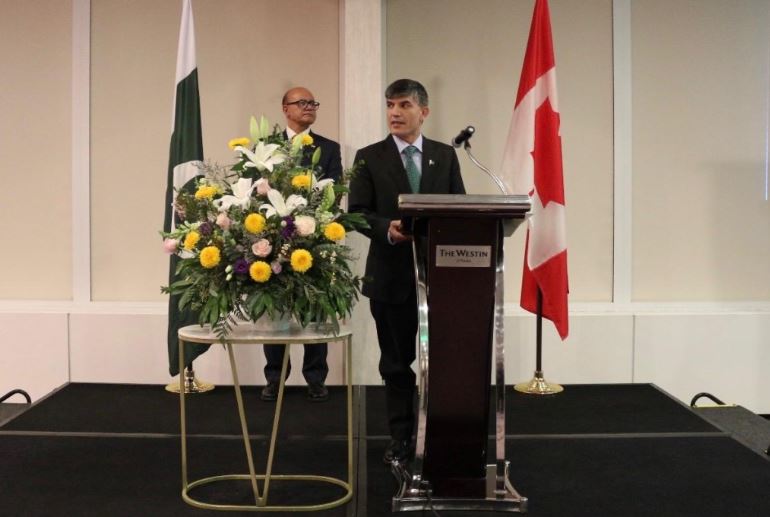 Ottawa – The High Commission hosted the Pakistan Day Reception to commemorate the 85th anniversary of Pakistan Day in Ottawa today. Around 250 guests including Canadian dignitaries, senior government functionaries, members of diplomatic corps, international organizations, business community, representatives of academia, media, civil society,