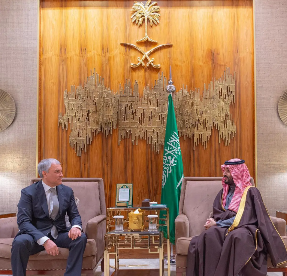 Present at the meeting were Minister of Energy Prince Abdulaziz bin Salman bin Abdulaziz, Minister of National Guard Prince Abdullah bin Bandar bin Abdulaziz, Speaker of the Shura Council Sheikh Dr. Abdullah bin Mohammed Al Al-Sheikh, Minister of State, Cabinet Member and National Security Advisor Dr. Musaed bin Mohammed Al-Aiban, Saudi Ambassador to the Russian Federation Abdulrahman Al-Ahmad and the Russian State Duma Speaker’s accompanying delegation.