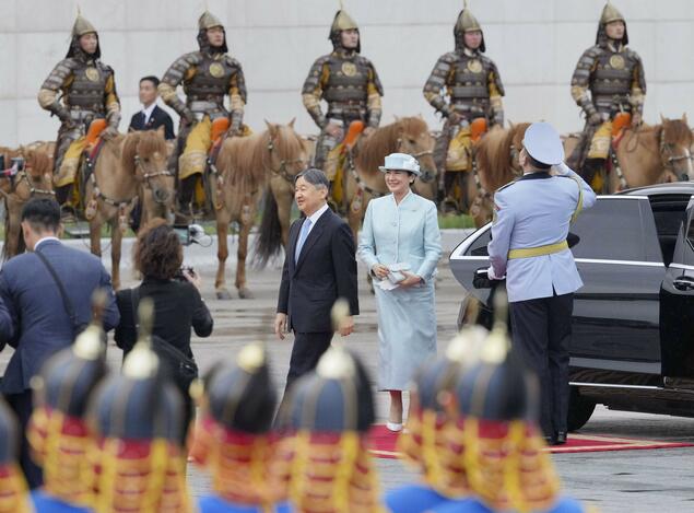 After meeting President Ukhnaa Khurelsukh and his wife at the government building in Ulaanbaatar, the emperor and the empress are expected to participate in a banquet hosted by the Mongolian leader later in the day.