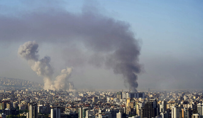 Smoke rises from the site of an Israeli airstrike that targeted Beirutís southern suburbs on October 5, 2024.