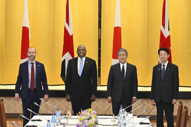 Iwaya and Economy, Trade and Industry Minister Yoji Muto met with their British counterparts, David Lammy and Jonathan Reynolds.