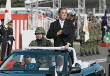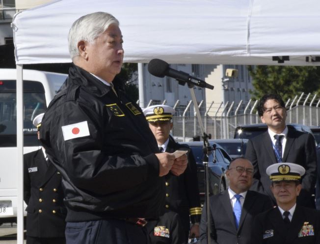 Nakatani interacted with crew members of the South Korean navy’s amphibious assault ship, the Marado, which was making a stop at a Japanese Maritime Self-Defense Force base in Yokosuka, south of Tokyo.
