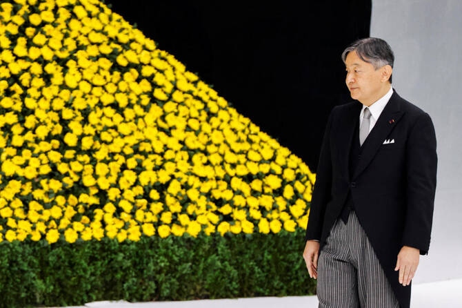 It came as Naruhito said he felt “a deep and renewed sense of sorrow” in a somber speech alongside Empress Masako in an indoor arena in the center of the city, where the national flag flew half-mast outside.