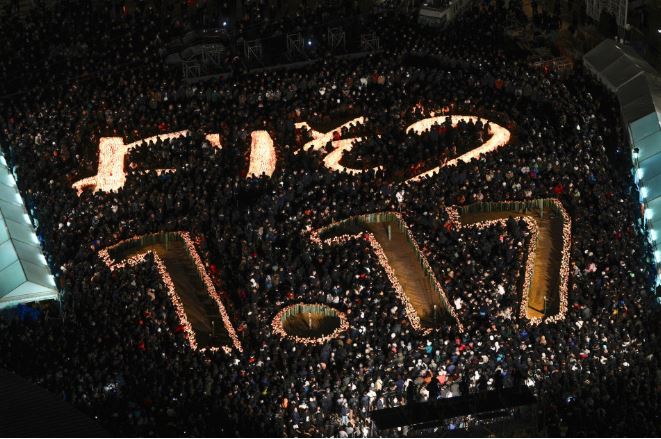 Thousands of paper and bamboo lanterns were placed at Kobe East Park to form the date “1.17,” along with the Japanese word “yorisou,” which means being together, in memory of other disaster-affected people such as those affected by the quake that hit Ishikawa Prefecture in central Japan on New Year’s Day last year.