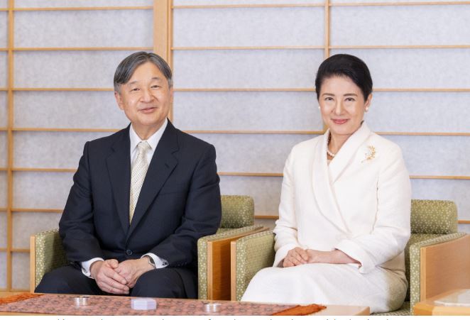 Emperor Naruhito (L) and Empress Masako (R) pose for a photograph at the Imperial Palace in Tokyo on Nov. 27, 2024. (Photo courtesy of Imperial Household Agency)