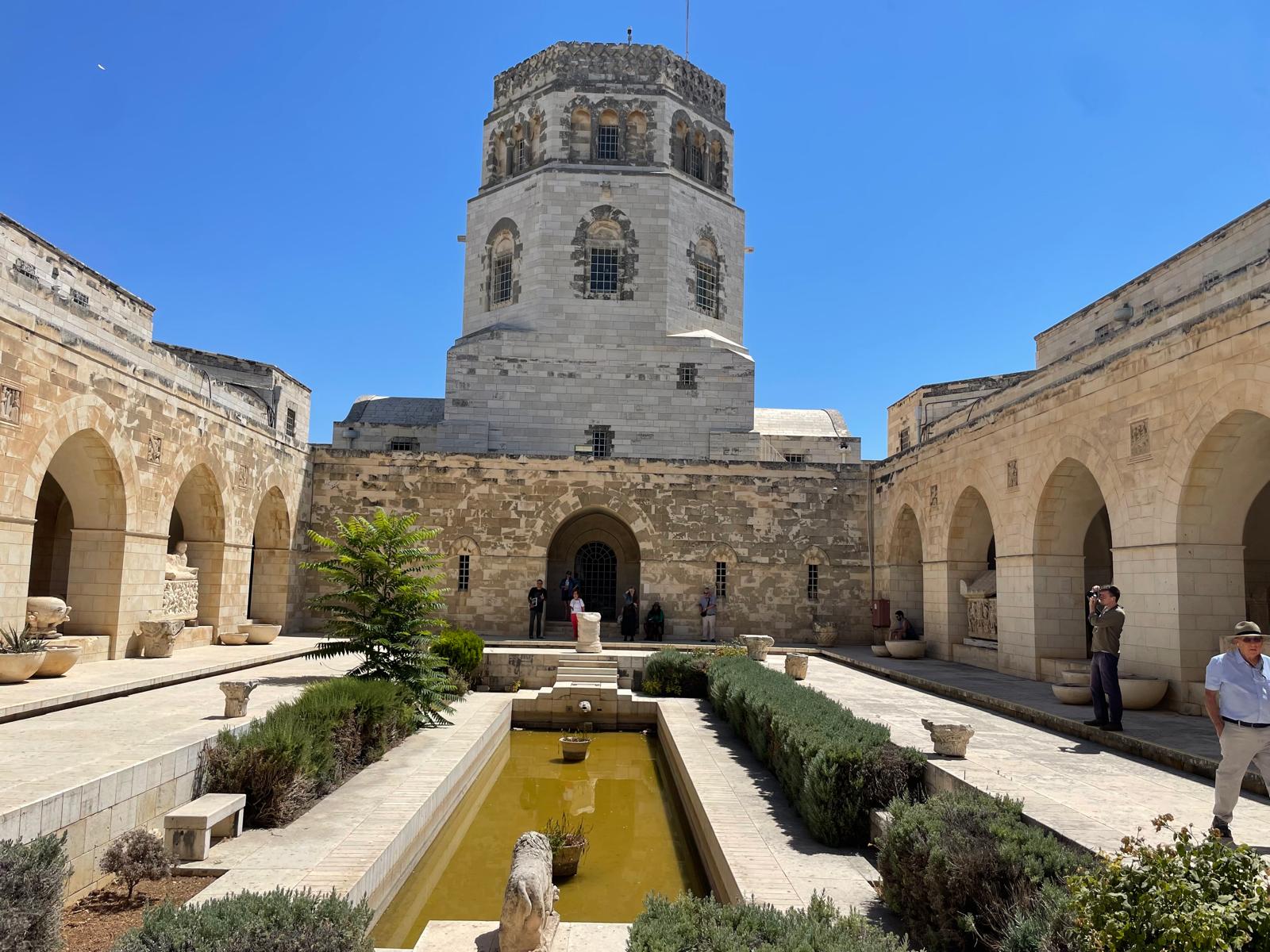 On a beautiful autumn day, a group of visitors strolled in the courtyard of the Rockefeller Archaeological Museum in East Jerusalem, admiring its elegant layout, featuring fountains and colonnades in the shadow of its imposing octagonal dome.