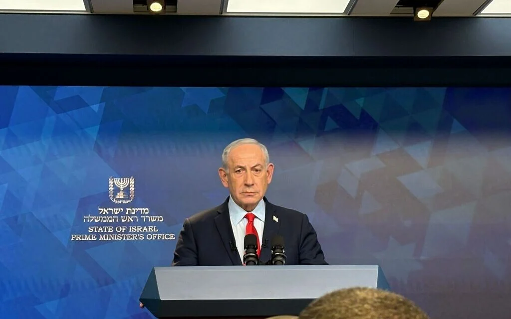 Netanyahu during a news conference at Mar-a-Lago, in Palm Beach, Florida,