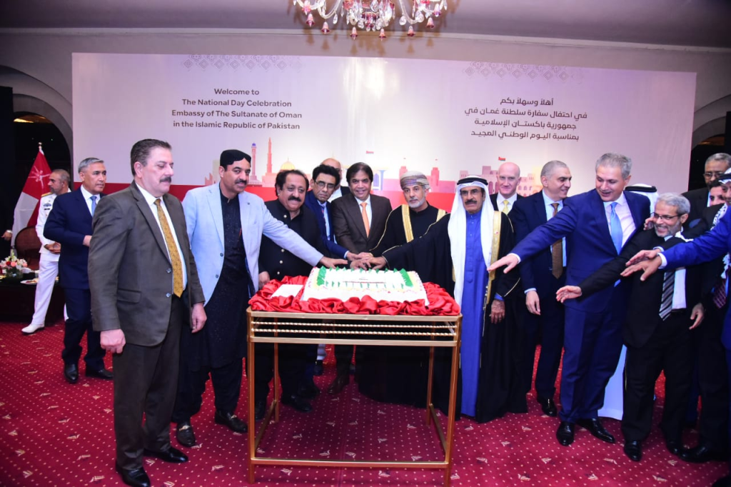 ISLAMABAD – The Embassy of the Sultanate of Oman in Islamabad celebrated Oman’s National Day with a grand and elegant reception on Friday, bringing together a distinguished assembly of dignitaries, diplomats, senior government officials, business leaders, and media representatives. Federal Minister for Railways, Mr. Hanif Abbasi, attended as Chief Guest, adding to the significance of the occasion.