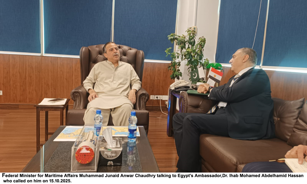 The understanding was reached during a meeting between Pakistan’s Federal Minister for Maritime Affairs, Muhammad Junaid Anwar Chaudhry, and Egypt’s Ambassador to Pakistan, Dr. Ihab Mohamed Abdelhamid Hassan, held in Islamabad on Wednesday.