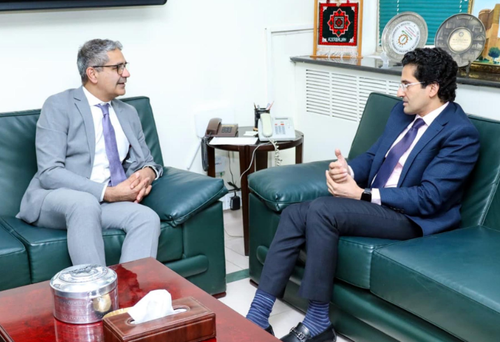 Islamabad, November 3: Federal Minister for Petroleum Ali Pervaiz Malik met today with His Excellency Mr. Tarik Ali Khan, the newly appointed High Commissioner of Canada to Pakistan, at the Ministry of Petroleum.