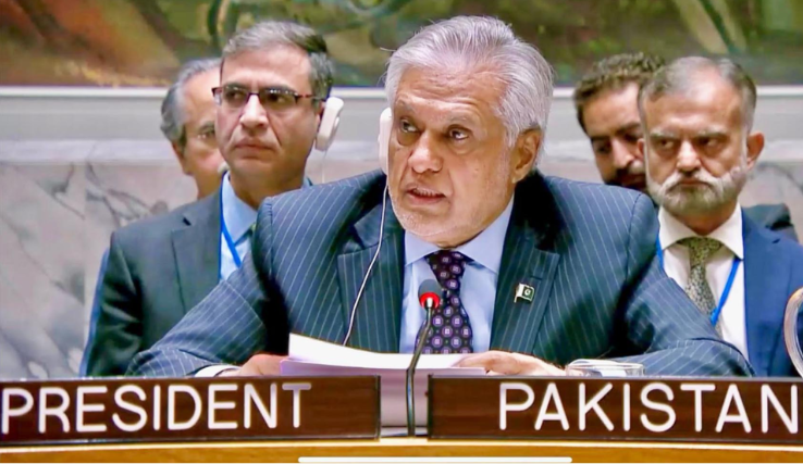 NEW YORK / ISLAMABAD – In a compelling display of principled diplomacy, Deputy Prime Minister and Foreign Minister of Pakistan, Senator Mohammad Ishaq Dar, presided over the United Nations Security Council’s Quarterly Open Debate on the “Situation in the Middle East, including the Palestinian Question.” The debate, elevated to the ministerial level under Pakistan’s presidency of the Council, reaffirmed Pakistan’s unwavering commitment to justice, peace, and multilateralism.