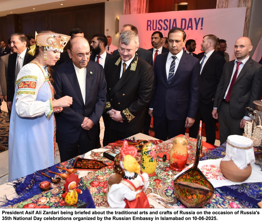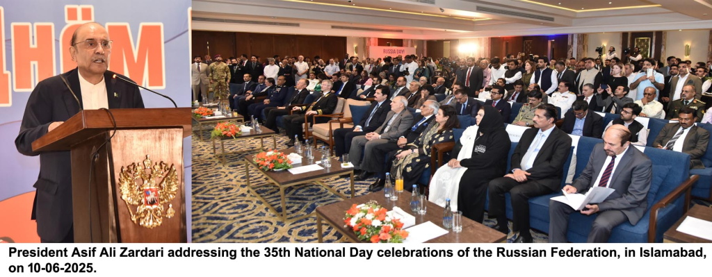 Islamabad – President Asif Ali Zardari emphasized the “enormous potential” for expanding Pakistan-Russia cooperation in trade, investment, technology, and people-to-people exchanges during a ceremony marking the 35th National Day of the Russian Federation in Islamabad on Tuesday.