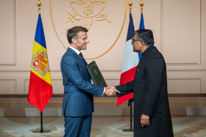 Andorra has a special arrangement; it has two Heads of States (Co-Princes which are President of France and Bishop of Urgell). Ambassadors accredited to Andorra are supposed to present credentials to both of them, a press release issued on Saturday said.