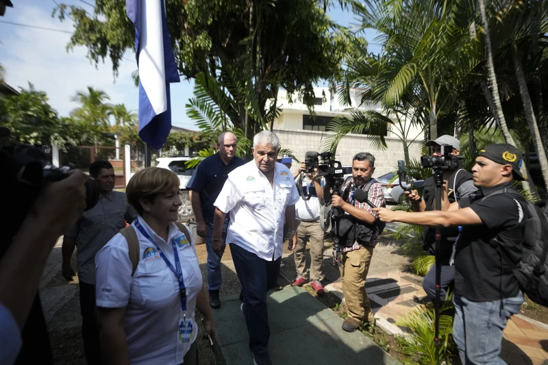 Achieving Goals presidential candidate Jose Raul Mulino arrives to Nicaraguan Embassy after voting during a general election in Panama City.