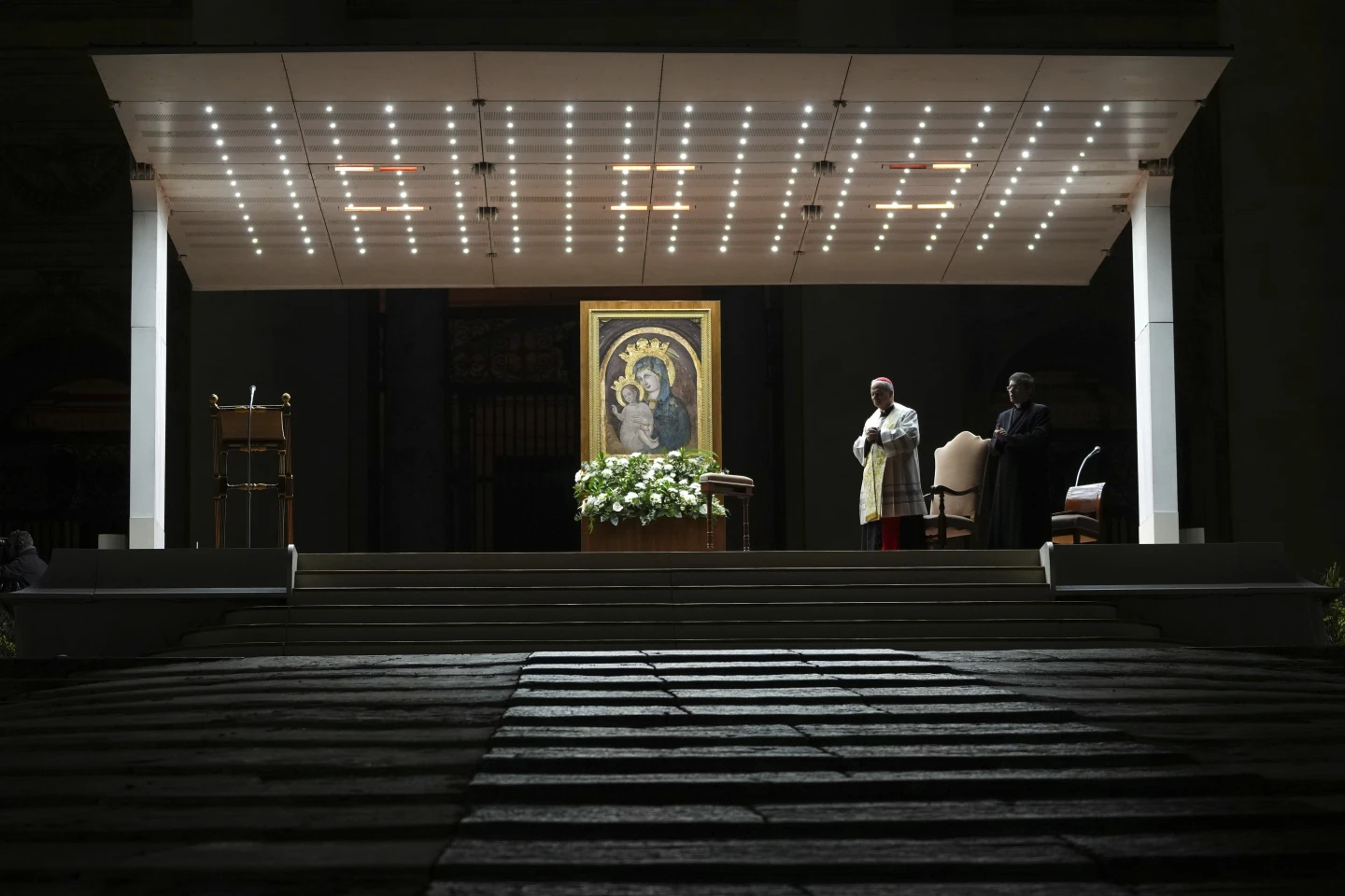 “Today the pope is giving us an extraordinary teaching on fragility,” he told reporters Monday. “Today the pope, not through words but with his body, is reminding all of us, we elderly people to begin with, that we are all fragile and therefore we need to take care of each other.”