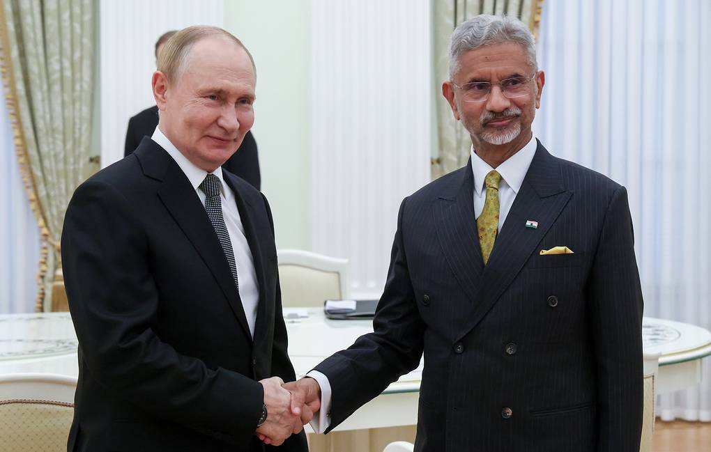 Russian President Vladimir Putin and India's Foreign Minister Subrahmanyam Jaishankar