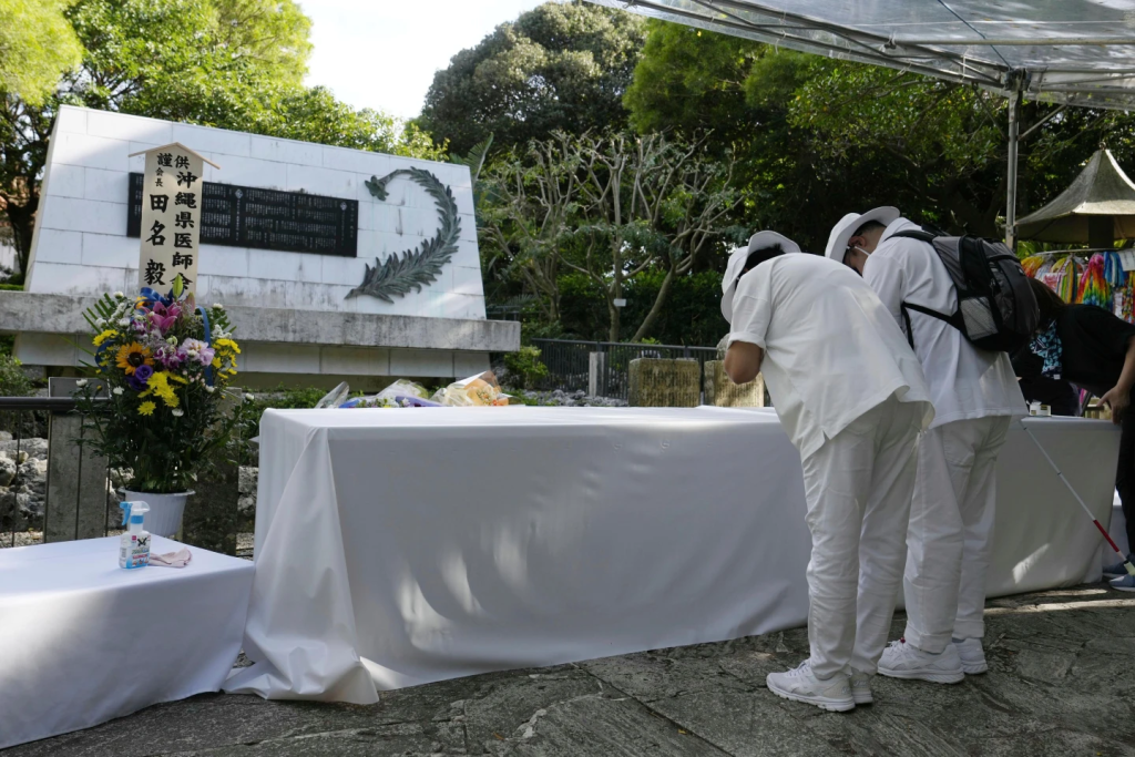 Prime Minister Shigeru Ishiba and Okinawa Gov. Denny Tamaki attended a service at the Peace Memorial Park in Itoman, where the final stage of the battle was fought. Another 342 names were added to the list of war dead inscribed on monuments, bringing the total to 242,567 people.