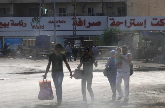 Residents carry their belongings as they flee their homes at the Bab al-Tebbaneh neighbourhood in Tripoli, northern Lebanon, early Sunday as sectoral fighting erupted overnight.