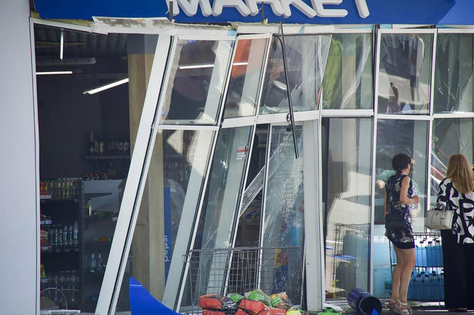 - Blasts blew out some windows of a shopping mall, raining shards onto the street, photos published by local officials showed