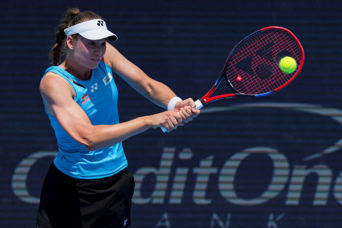 Elena Rybakina (KAZ) returns a shot against Aryna Sabalenka (BLR) during the Cincinnati Open