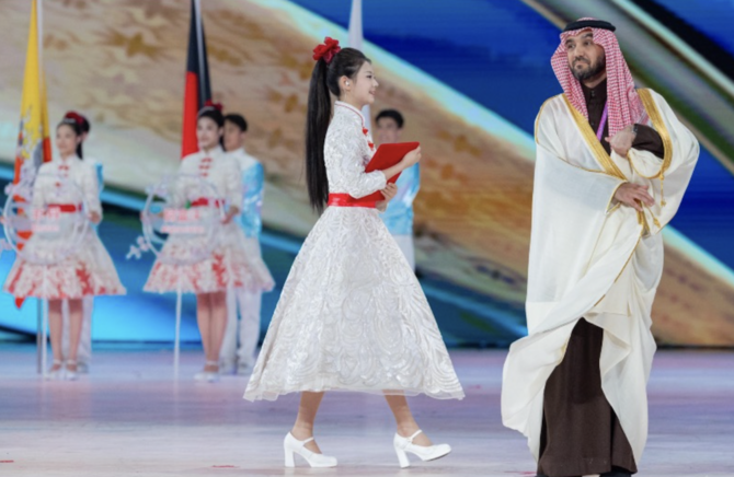 The head of the Kingdom’s delegation, Prince Abdulaziz bin Turki Al-Faisal, minister of sports and president of the Saudi Olympic and Paralympic Committee, received the flag from Timothy Fok, vice president of the Olympic Council of Asia.