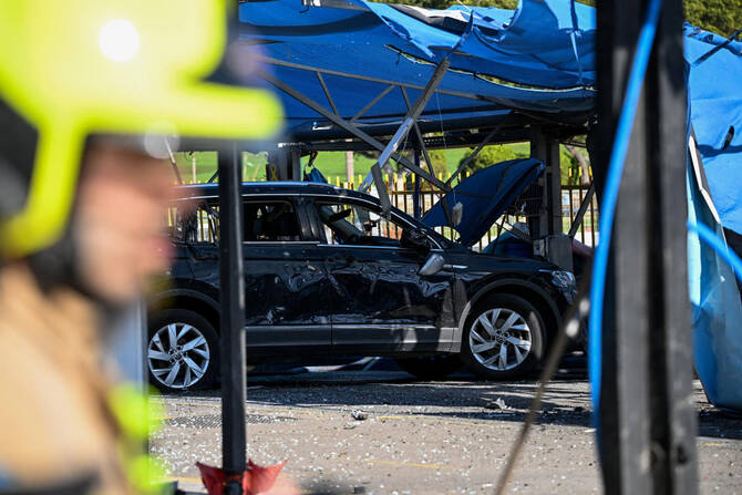 Israeli media showed images it said were from Tel Aviv of a blast hole in a street with a damaged car jutting out of it.